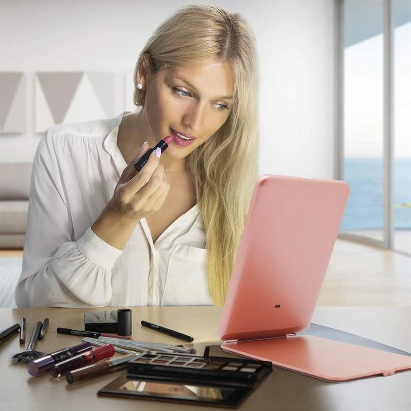 UNIQ Foldable Rechargeable LED Mirror - Vanity Travel Mirror - Pink - Mirror