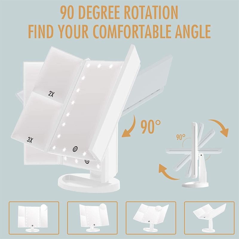 UNIQ Hollywood Makeup Mirror Trifold mirror with LED light, White